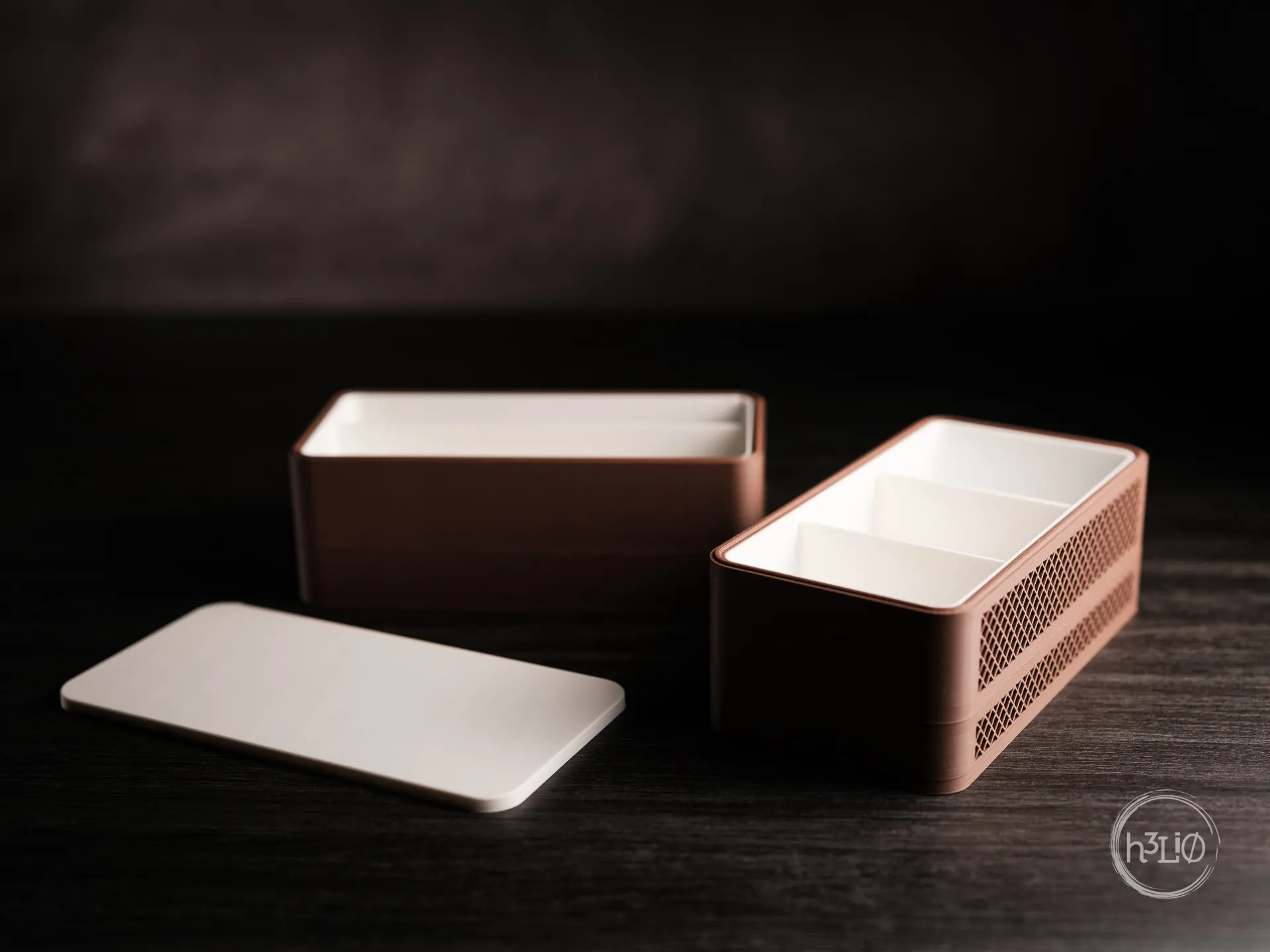 Modularne pudełko z opcją siatkowej wentylacji, pokrywką i wymiennymi wkładkami. Możliwość piętrowania.